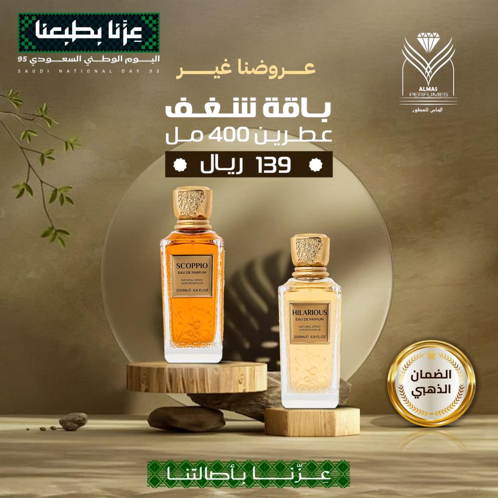عطرين فرنسيين فاخرين بحجم 200 مل لكل زجاجة،